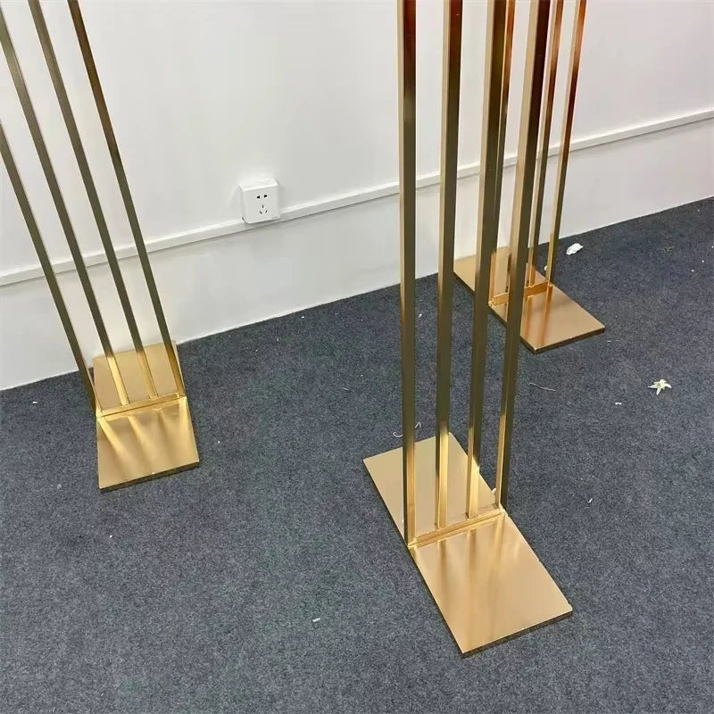 Shiny Gold-Plated Square Screen Backdrop Shelf, Wedding Arch, Geometric Flower, Door Stand, Artificial Flor, 2.2m, 1/3Pcs
